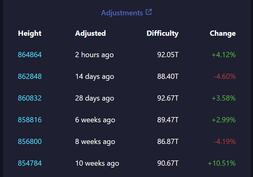 - Bitcoin mining difficulty climbs 4.12%. The network's mining difficulty has reached 92.05T, nearing its all-time high of 92.67T set four weeks ago.