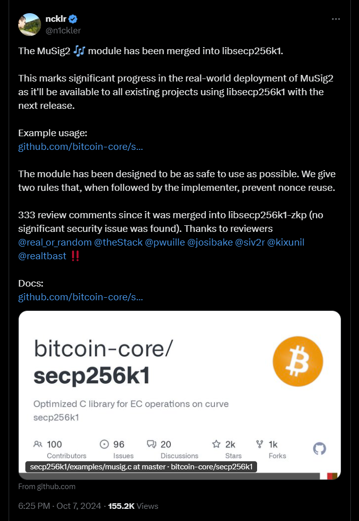- Bitcoin Core v28.0 is here. Highlights include support for testnet4, opportunistic 1-parent-1-child (1p1c) package relay, default relay of opt-in TRUC and pay-to-anchor transactions, limited package RBF relay, and full-RBF by default. It also adds default parameters for assumeUTXO, enabling the