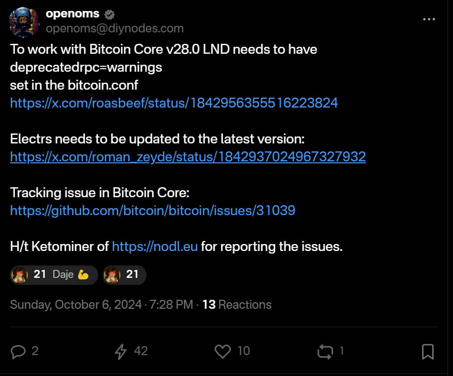 loadtxoutsetRPC to use a UTXO set downloaded outside the Bitcoin network.- Learn more about key upgrades found in v28 by listening to the episode 95 of the Bitcoin Explained show.