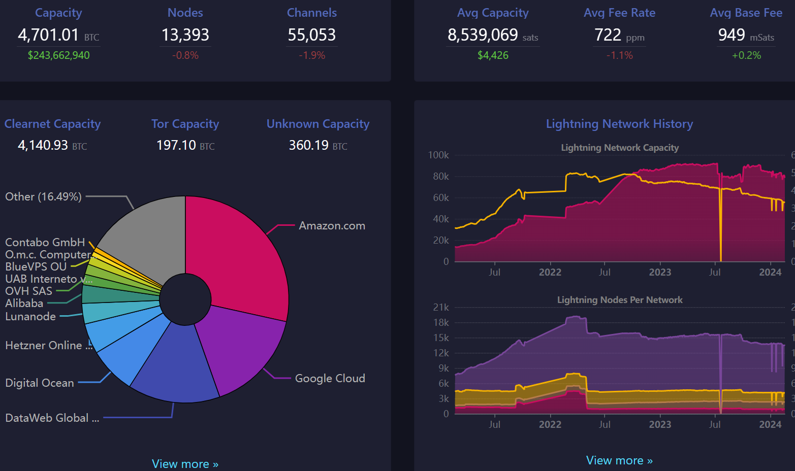 - Lightning network capacity contracted by more than 100 BTC, and there are 100 nodes and 1000 channels fewer compared with previous week.