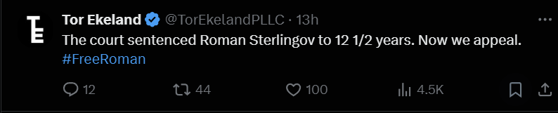 - Bitcoin Fog user Roman Sterlingov gets 12.5 years for allegedly running it based on 'junk science.' Sterlingov was sentenced to 150 months in federal prison and ordered to forfeit $395 million and seized assets worth around $1.76 million on Friday. Additionally, he was ordered to forfeit 1,345 BTC from the Bitcoin Fog wallet, valued at over $103 million.