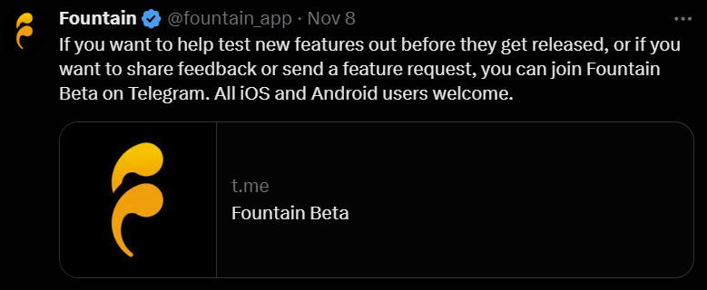 - Fountain app v1.1.6 is now live on iOS and Android. It includes many bug fixes, new audio APIs, performance upgrades, and nested navigation.