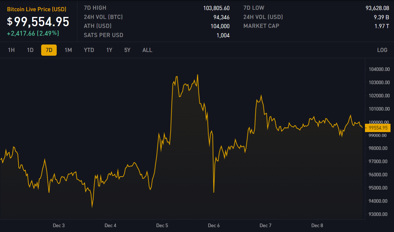 - Bitcoin: $100k milestone and $2 trillion market cap. The price of Bitcoin reached $100,000 for the first time in history, marking a notable milestone and surpassing a $2 trillion market cap.