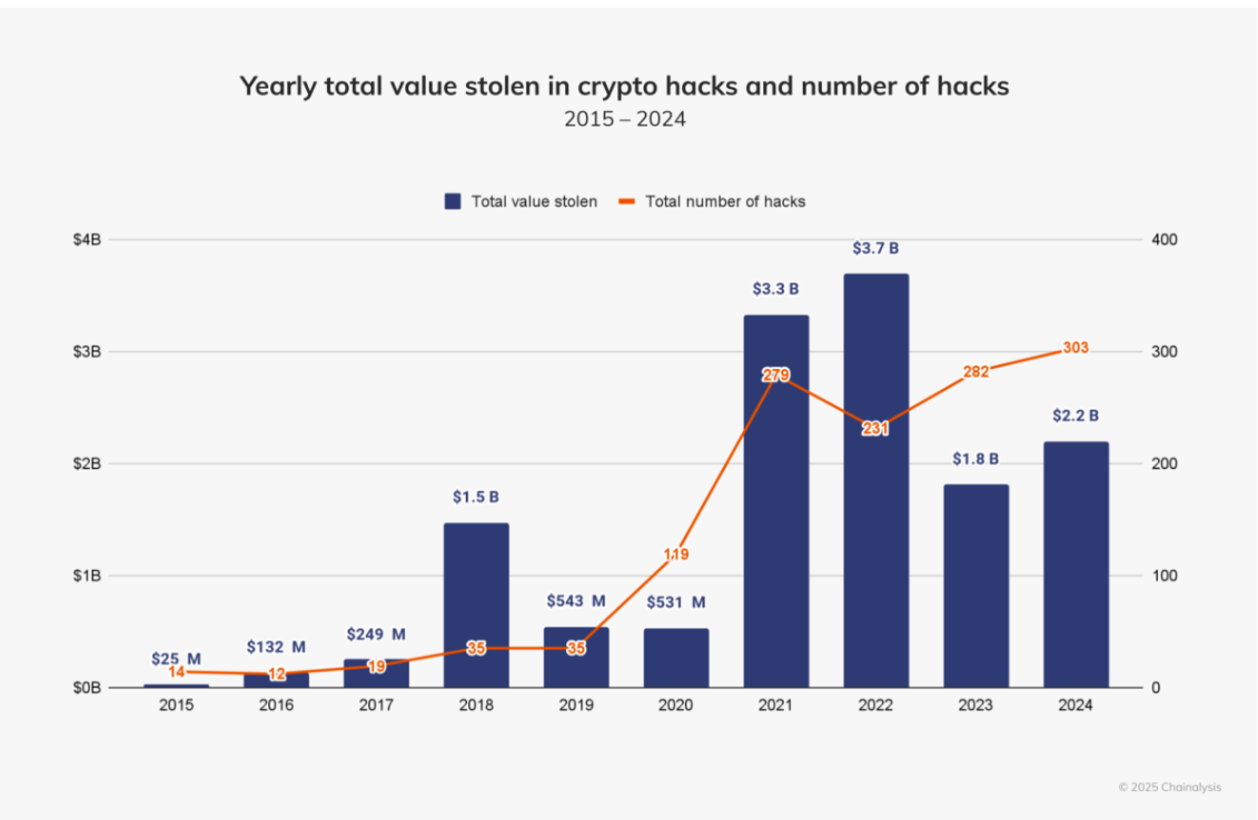 - $2.2 billion worth of cryptocurrencies have been stolen in 2024. According to blockchain surveillance firm Chainalysis, the USD amount of stolen funds increased by approximately 21.07% year-over-year (YoY), reaching $2.2 billion. Additionally, the total number of hacking incidents rose from 282 in 2023 to 303 in 2024. It is reported that North Korea is responsible for 61% of the cryptocurrency thefts this year.