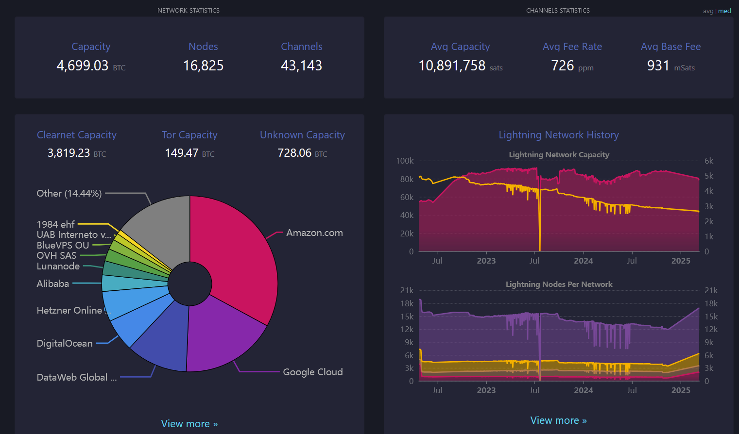 - There are approximately 4699 BTC on the Lightning Network right now. The capacity has declined by 88 BTC in the last seven days, per amboss.space stats.