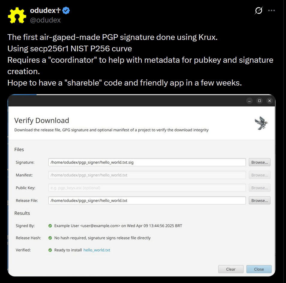 - Bitcoin Safe v1.2.3 expands QR SignMessage compatibility for all QR-UR-compatible hardware signers (SpecterDIY, KeyStone, Passport, Jade; already supported COLDCARD Q). It also adds the ability to import wallets via QR, ensuring compatibility with Keystone's latest firmware (2.0.6), alongside other improvements.