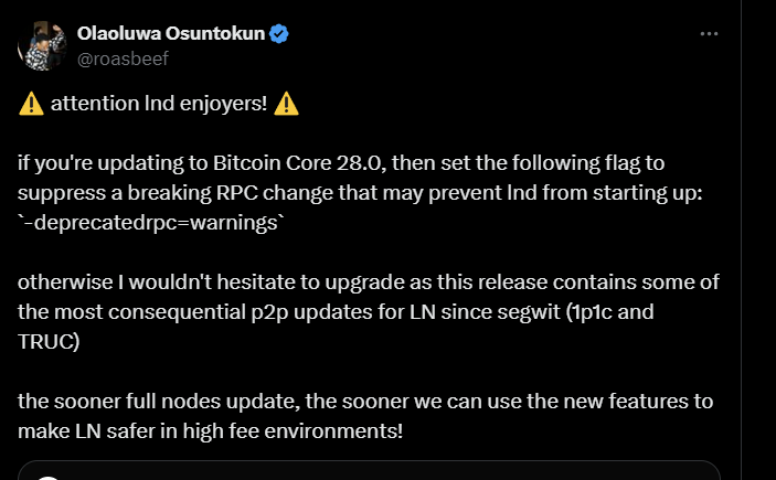 Some of more notable changes introduced in Bitcoin Core v28 include: