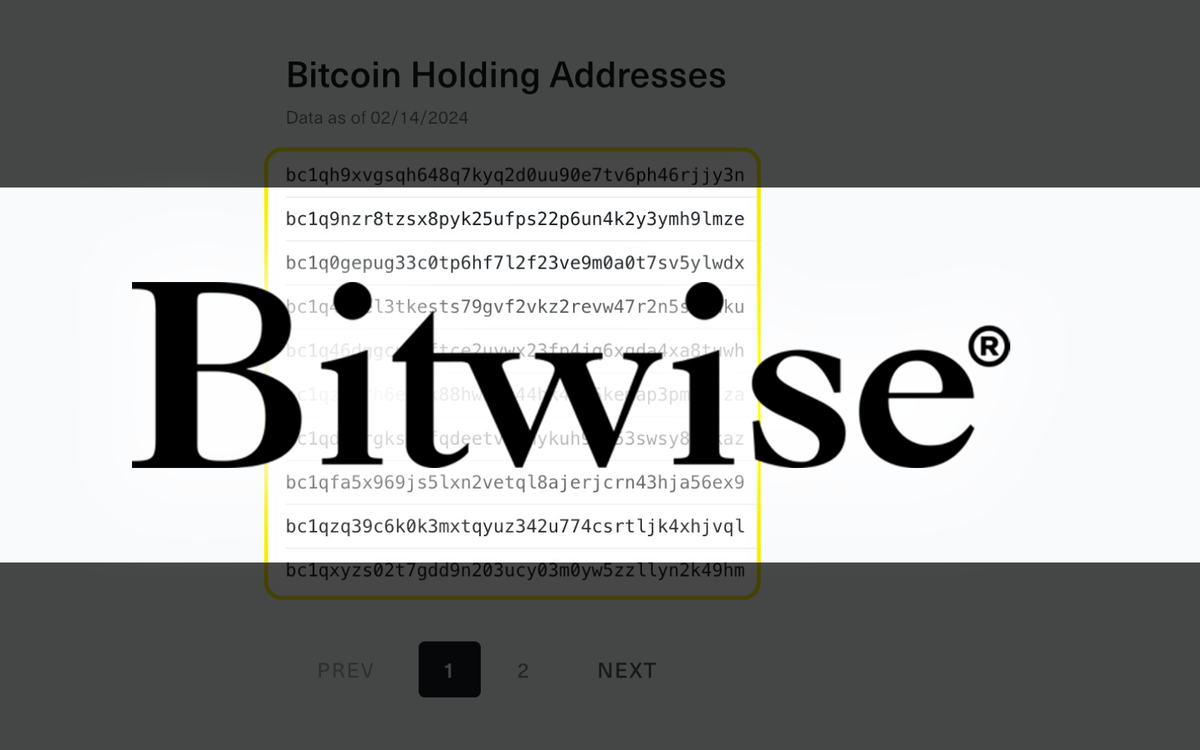 - Bitwise is one of two Bitcoin spot ETF providers that's allocating a portion (10%) of its ETF proceeds to support open source Bitcoin development (no strings attached). Late in January, it became the first Bitcoin spot ETF to publicly disclose its bitcoin holding addresses.