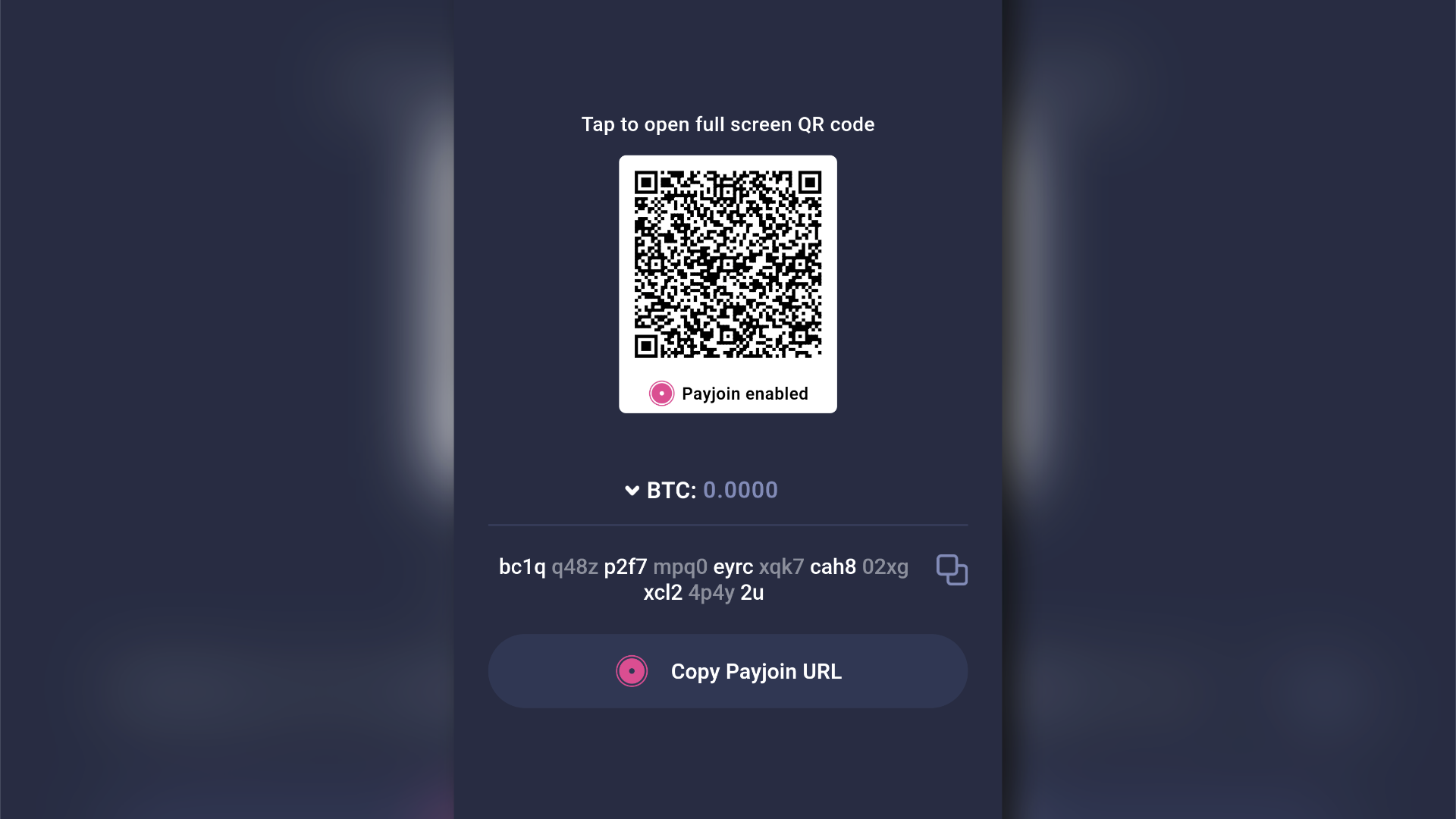 Use Payjoinoption. - Now on your receive screen you'll see an option to copy a Payjoin URL