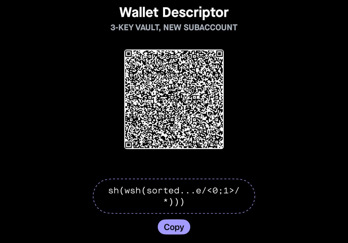 - "While you can copy / paste the raw wallet descriptor text, we recommend saving the QR encoded version of it, which has built-in error correction and is thus far less likely to be corrupted."