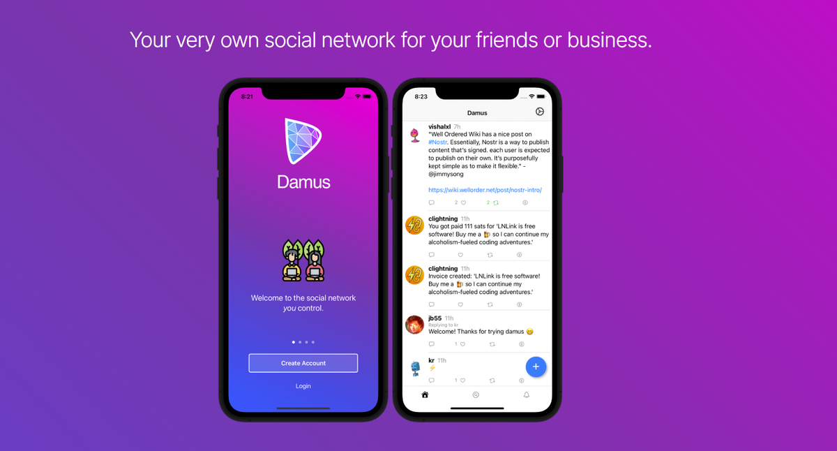 Damus is a Nost client for iOS, iPad and MacOS devices.