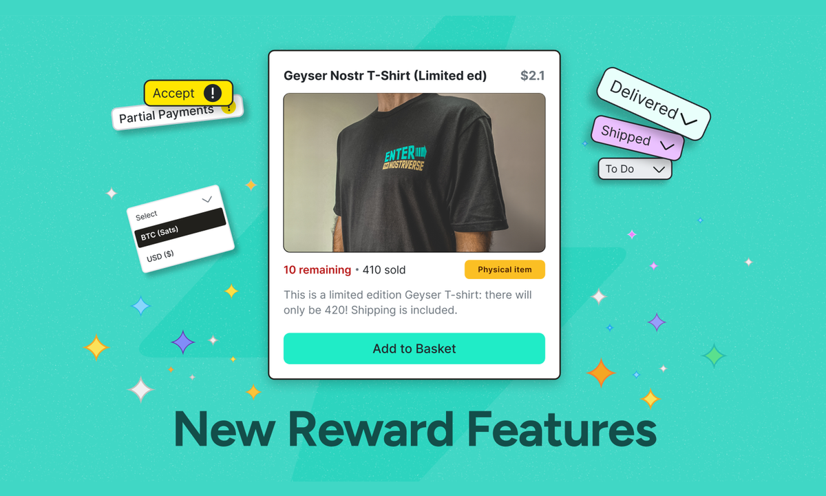 - "New reward features are live! You can now power up your Rewards with Limited Editions, denominations in sats, and reward management," announced Geyser.