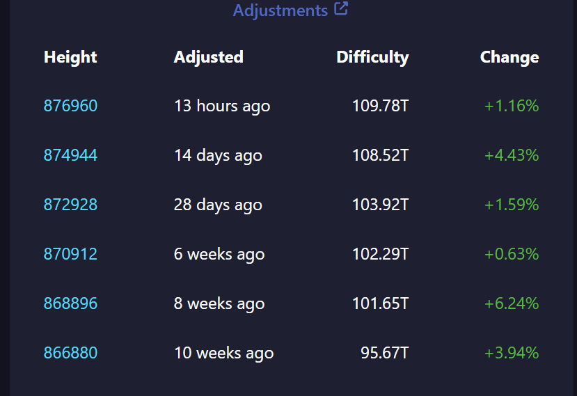 - Bitcoin mining difficulty has reached 109.78T. The network's hashrate has continued to grow recently and is currently around 779 exahashes per second (EH/s), based on a 7-day simple moving average.