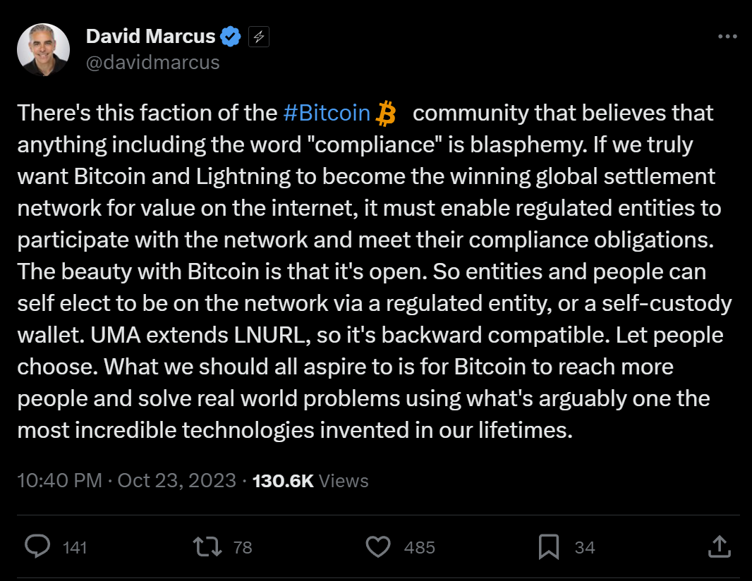 - "Open sourcing the Universal Money Address (UMA) standard. Money needs to move like email, so we’ve extended Lightning and LNURL to support compliance and FX. Users will be able to send/receive fiat & crypto via their UMA-enabled exchange, wallet, or bank," announced Lightspark's David Marcus earlier this week.