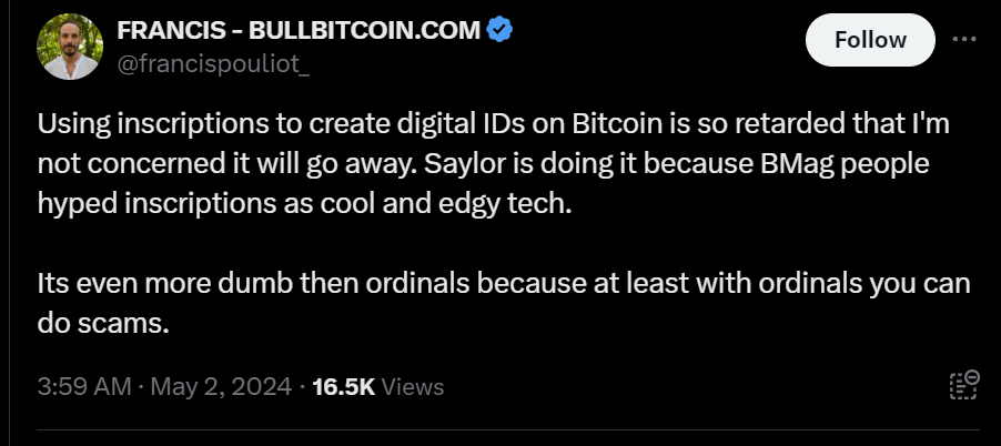 "Wouldn't it be great if instead of a blue check, green check, etc., there was an orange check that was a global standard? With MicroStrategy, maybe we could approach this idea of decentralized identity, with Bitcoin," Michael Saylor said in the announcement.
