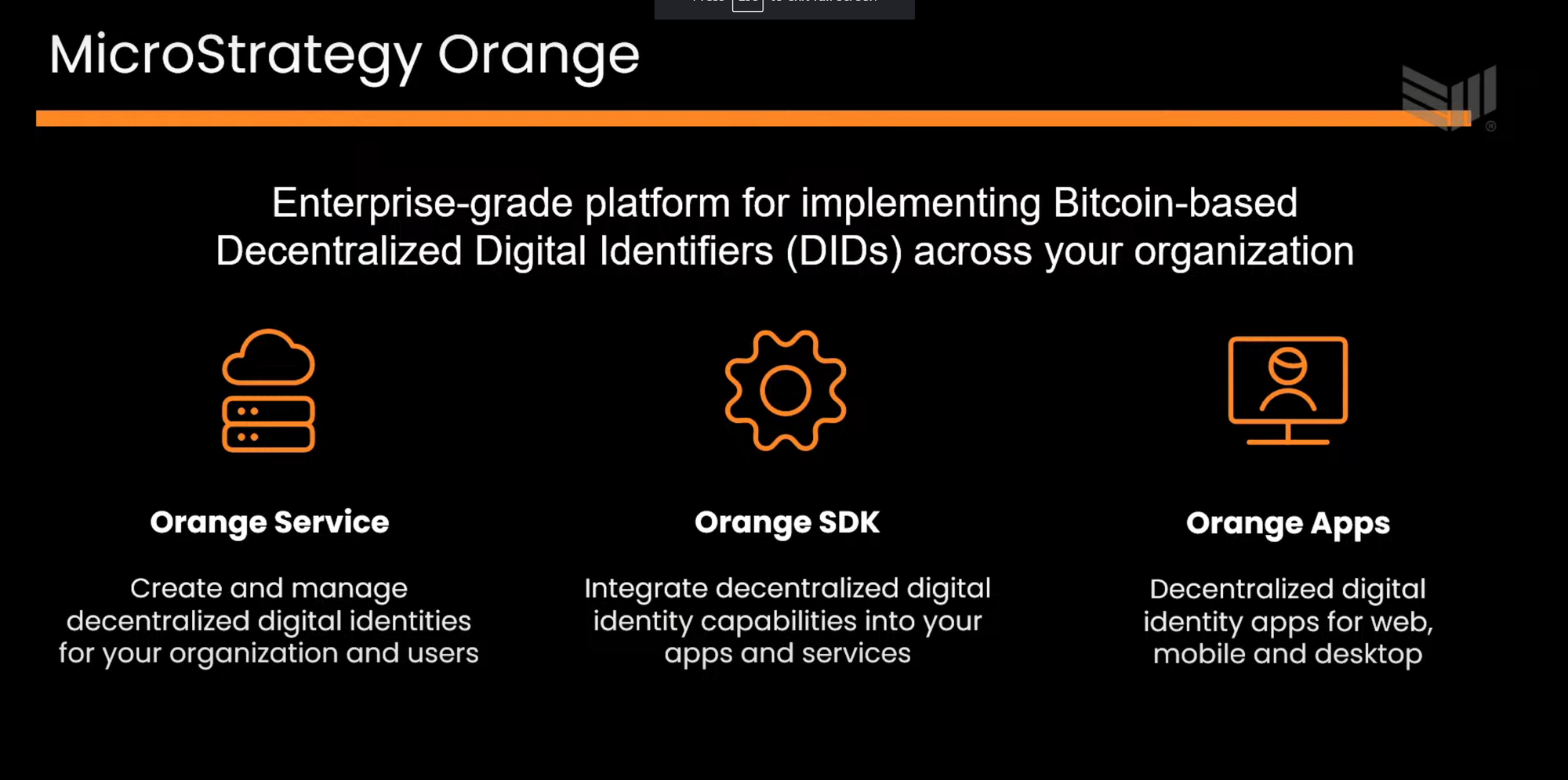 MicroStrategy Orange is the company's implementation of inscription-based Bitcoin DID's (did:btc), designed to streamline their integration into other enterprise apps and services.