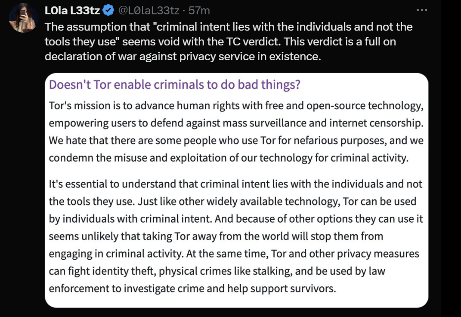 "Tornado Cash in its nature and functioning is a tool intended for criminals. The criminal user is fully facilitated," a judge reportedly said from the bench.