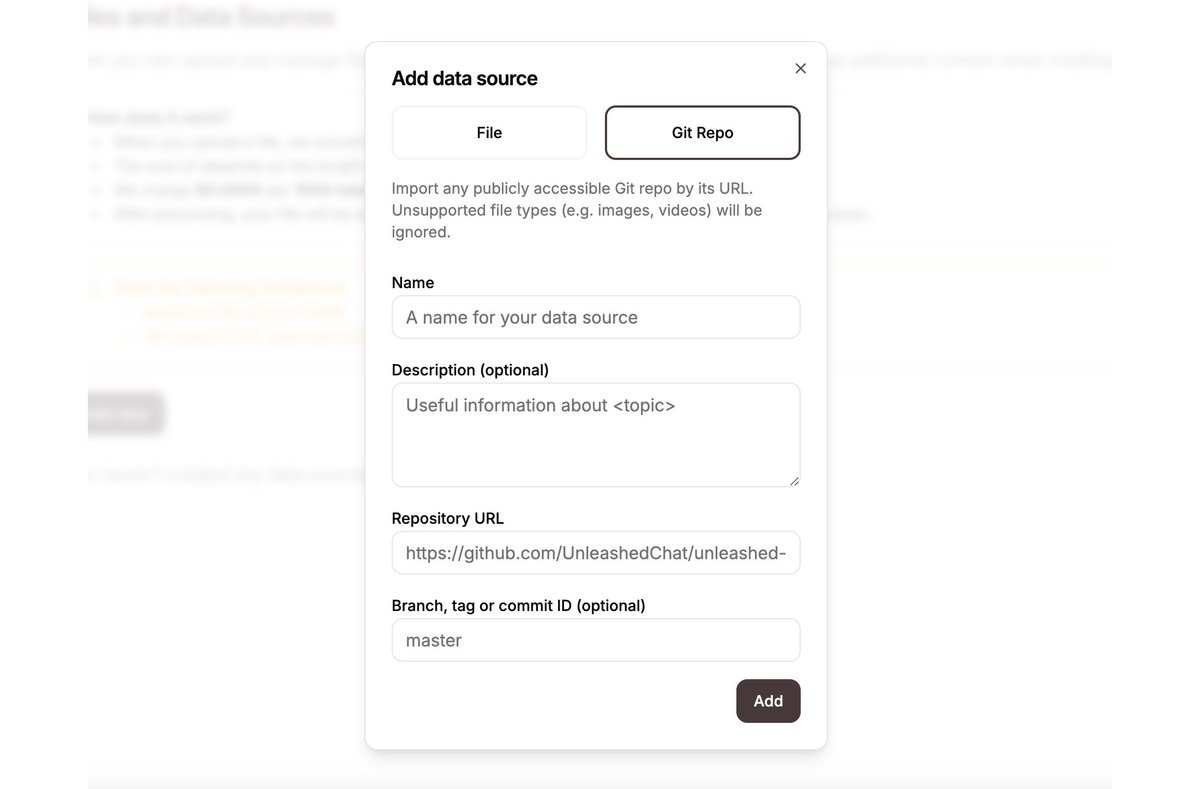 Unleashed.Chat v0.1.10: Import Git Repositories