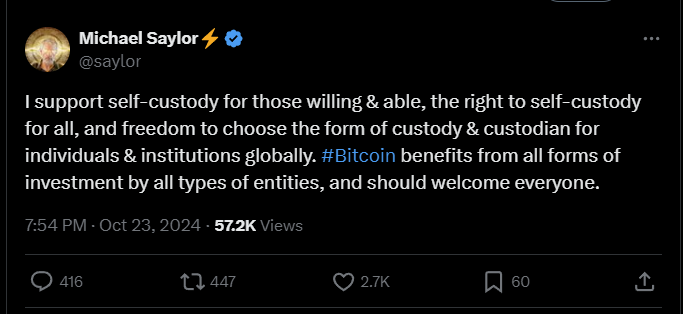- Saylor has drawn scrutiny from the broader Bitcoin community after a recent interview with NZ Herald senior business journalist Madison Reidy, where the MicroStrategy chairman downplayed the risk of bitcoin being held with large regulated institutions.