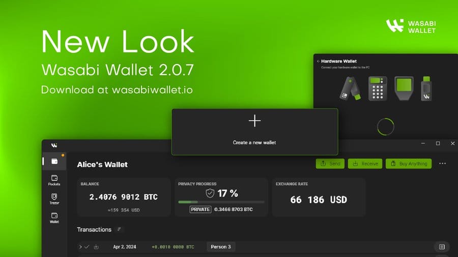 - "Wasabi Wallet has released version 2.0.7. This includes a complete redesign of its user interface, Trezor Safe 3 hardware device support and Full RBF enhancement."