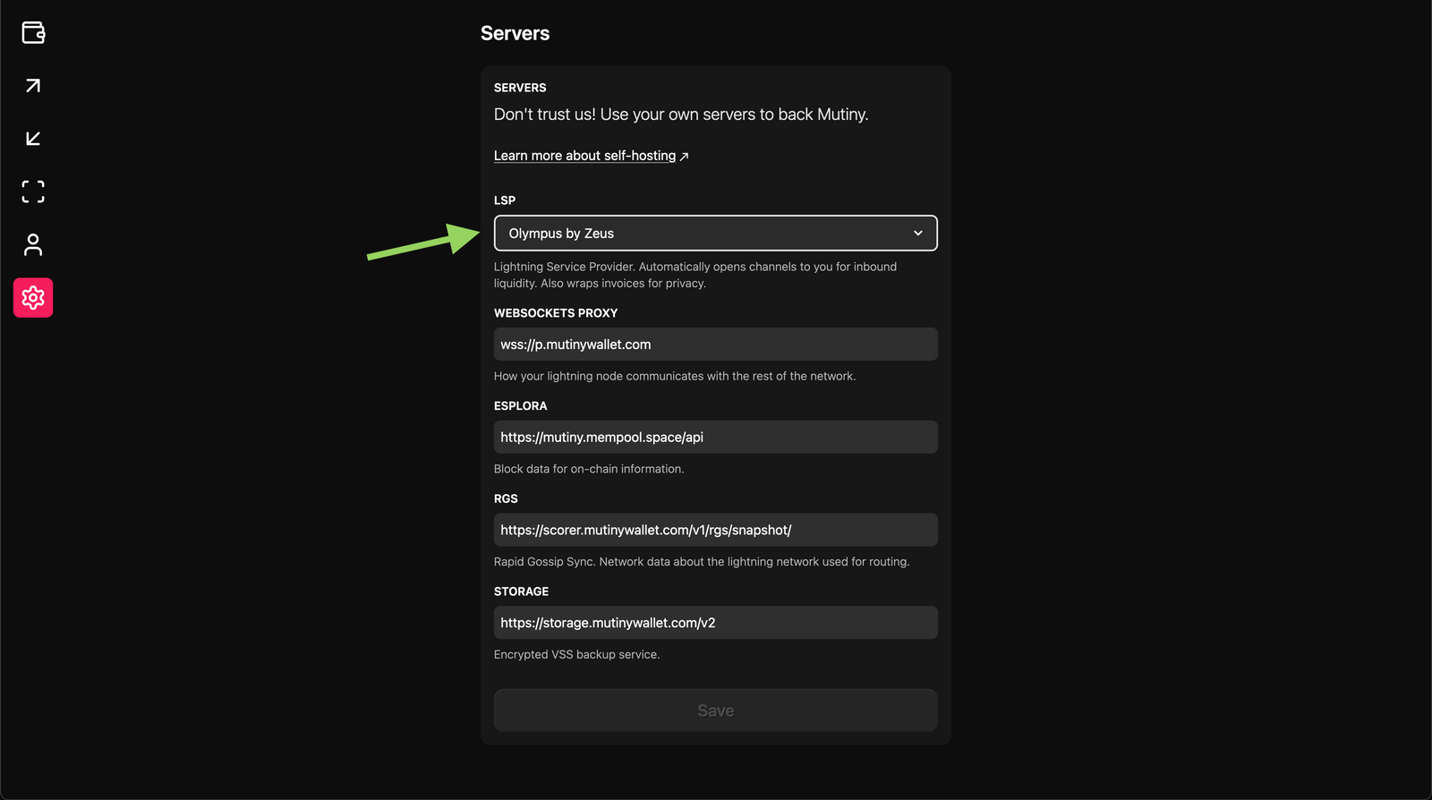 - The Olympus by ZEUS LSP will continue to work with the Mutiny wallet, regardless of where it is deployed. If you're using the self-custodial Lightning wallet in Mutiny, it will default to using Olympus by ZEUS LSP.